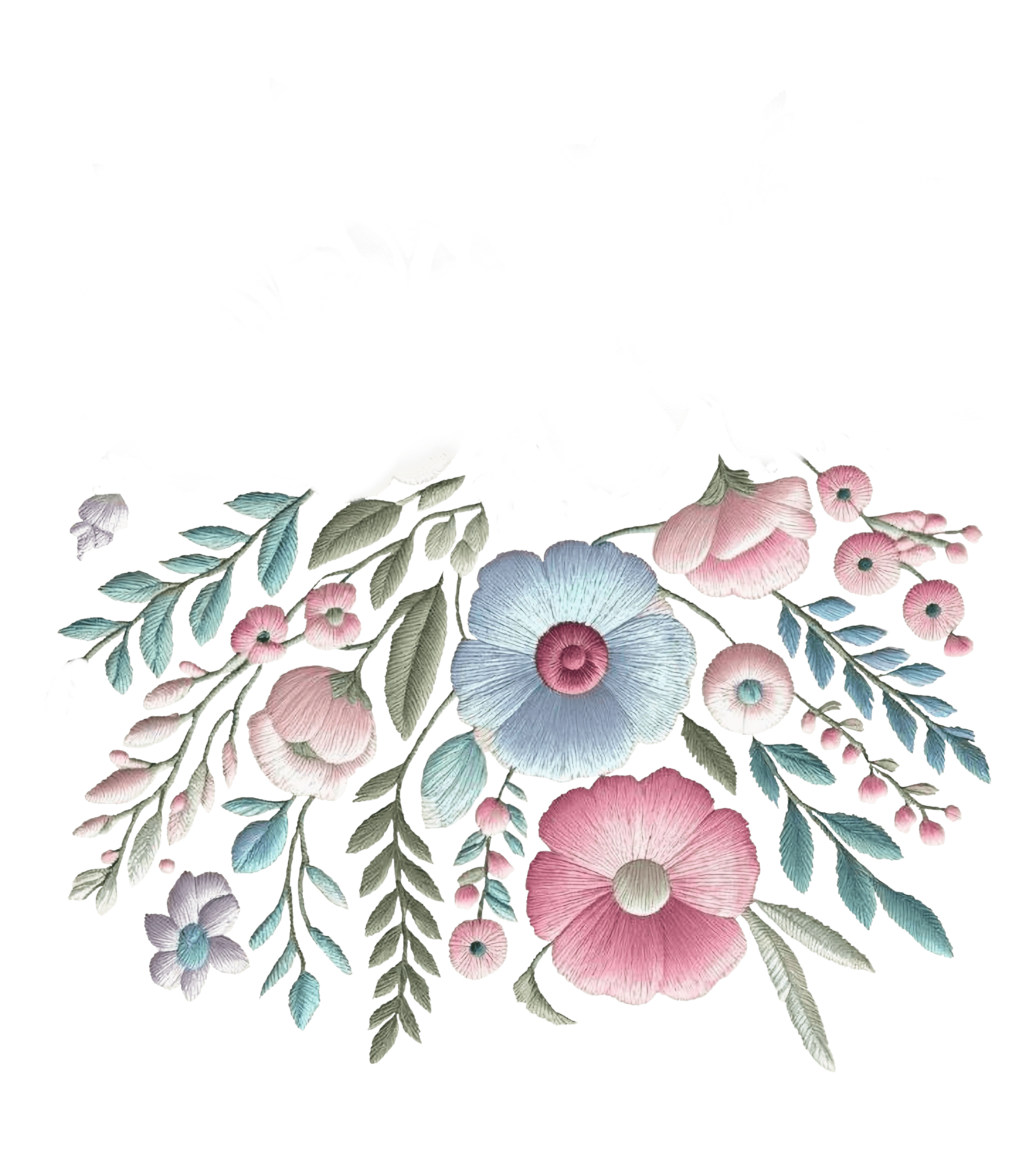 The visual language is deliberately understated: clear typography, generous negative space, and abstract floral imagery used for depth rather than decoration.